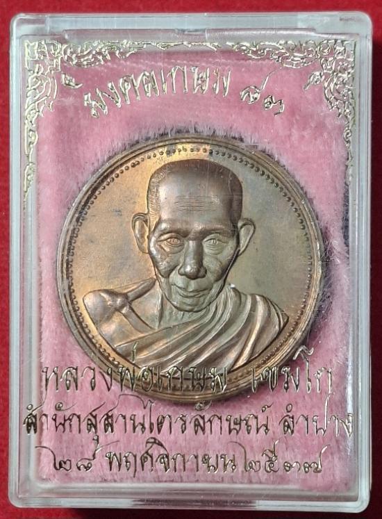 เหรียญมงคลเกษม หลวงพ่อเกษม เขมโก สุสานไตรลักษณ์ จ.ลำปาง ปี2537 (สภาพสวย กล่องเดิม นิยม) |