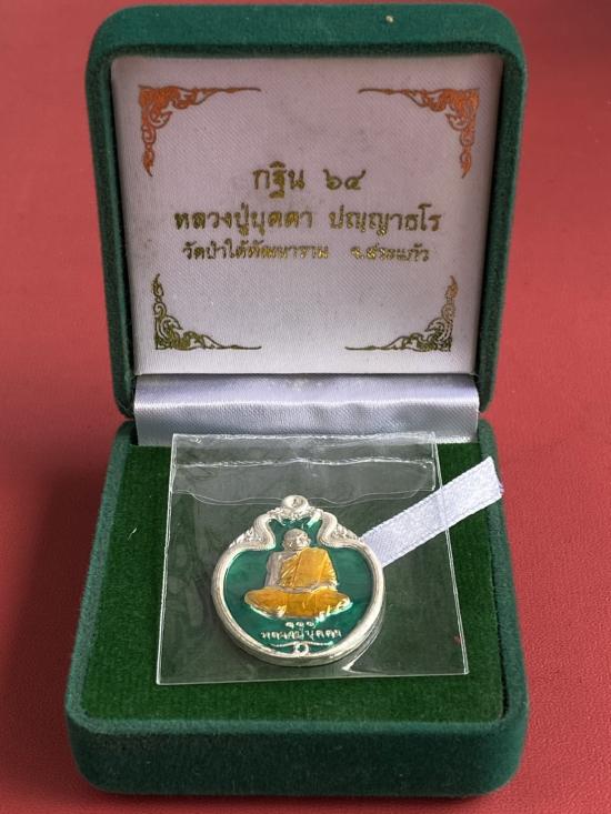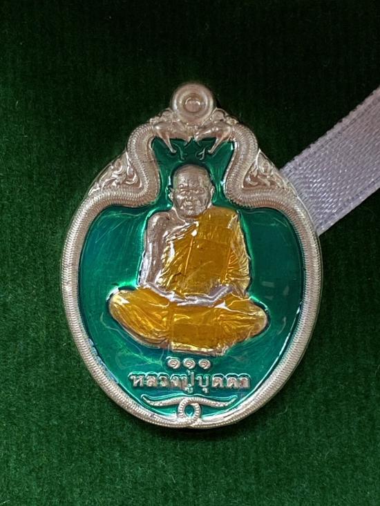 เคาะเดียวแดง หลวงปู่บุดดา รุ่น กฐิน64 เนื้อ เงินลงยาเขียว น้ำหนัก10.5กรัม |