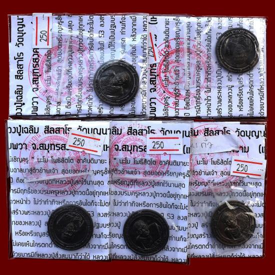 ชุด 5 องค์...เหรียญหลวงปู่ทวด รุ่นทักษิณาจารย์ 53 เนื้อตะกั่ว หลวงปู่เฉลิม วัดบุญนาคประชาสรรค์ จ.สมุทรสงคราม พร้อมซองใบฝอยเดิมจากวัด สภาพพระตามรูปทุกประการ (ขนาดประมาณ 2.7 ซม.)