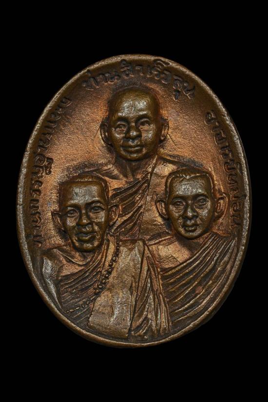 เหรียญหล่อ 3 บูรพาจารย์ ลป.ญาท่านสวน จ.อุบล เนื้อทองแดง ปี 42