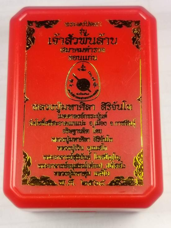 พระปิดตาจินดามณี"เจ้าสัวพันล้าน"หลวงปู่มหาศิลา สิริจันโท วัดโพธิ์ศรีสะอาดแกแปะ (สมาคมตำรวจขอนแก่นจัดสร้างถวาย) เนื้อชานหมากตะกรุดทองคำปิดแผ่นเงินแท้หน้า หลัง หมายเลข 205 พร้อมกล่อง