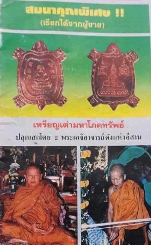 เหรียญเต่ามหาโภคทรัพย์ปี 38 หลวงปู่พรหมมาเขมจาโร พิเศษมีจารย์ รายมือหน้าหลัง คมชัดมีหลวงพ่อคูณ วัดบ้านไร่ ร่วมปลุกเสกด้วย เคาะเดียวแดง
