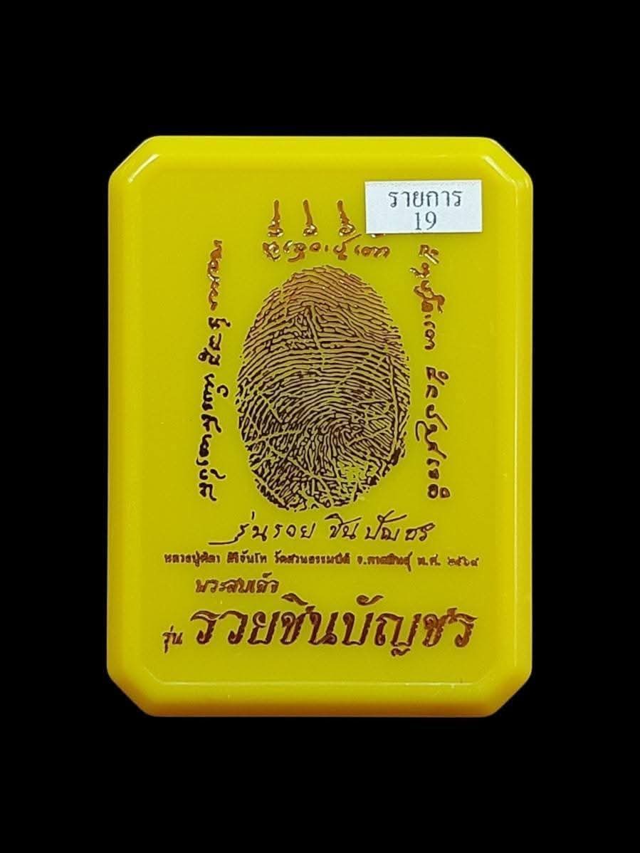 พระสมเด็จหลังลายนิ้วมือ รุ่นแรก "รวยชินบัญชร" หลวงปู่ศิลา สิริจันโท วัดสวนธรรมปิติ เนื้อผงน้ำมันปัดเรืองแสง สวยเดิมกล่องครบ