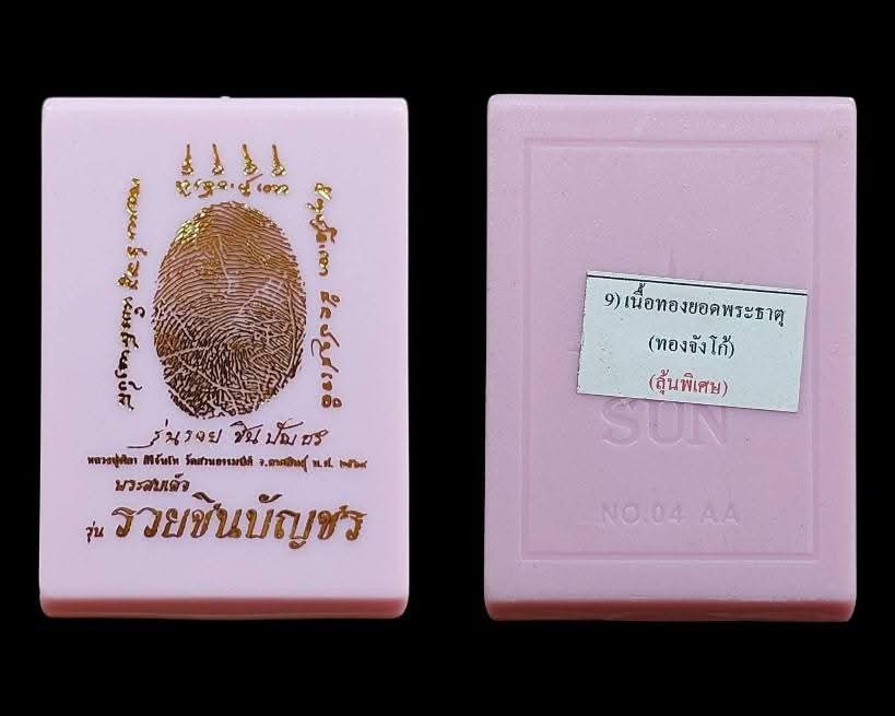 พระสมเด็จหลังลายนิ้วมือ รุ่นแรก "รวยชินบัญชร" หลวงปู่ศิลา สิริจันโท วัดสวนธรรมปิติ เนื้อทองยอดพระธาตุ เลข147 สวยเดิมกล่องครบ