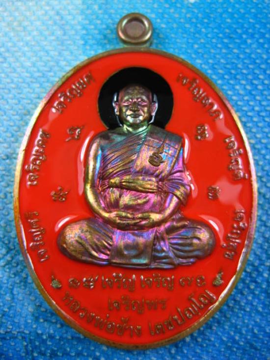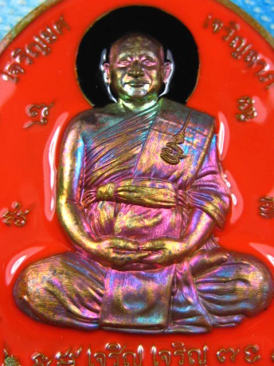 เหรียญสารพัดเจริญ เนื้อทองทิพย์ผิวรุ้ง ลงยาส้ม ปี2566 หลวงพ่อช้าง วัดจุกเฌอ แปดริ้ว (---A45---)