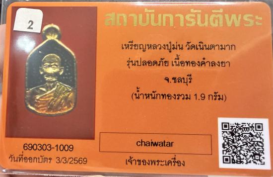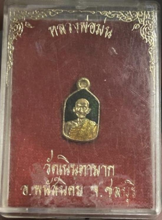 เหรียญ ปลอดภัย หลวงปู่ม่น วัดเนินตามาก (เนื้อทองคำลงยา) พร้อมกล่องเดิมครับ
