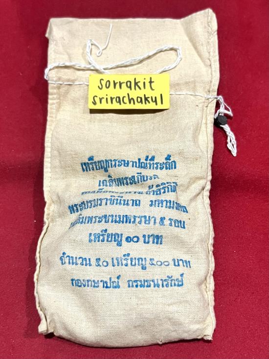 เหรียญสิบบาทที่ระลึกเฉลิมพระเกียรติสมเด็จพระนางเจ้าสิริกิติ์พระบรมราชินีนาถพระพันปีหลวงเฉลิมพระชพรรษา ๕ รอบ ยกถุง 50 เหรียญอยู่ในถุงผ้าเดิมๆจากกรมธนารักษ์หายากน่าสะสม