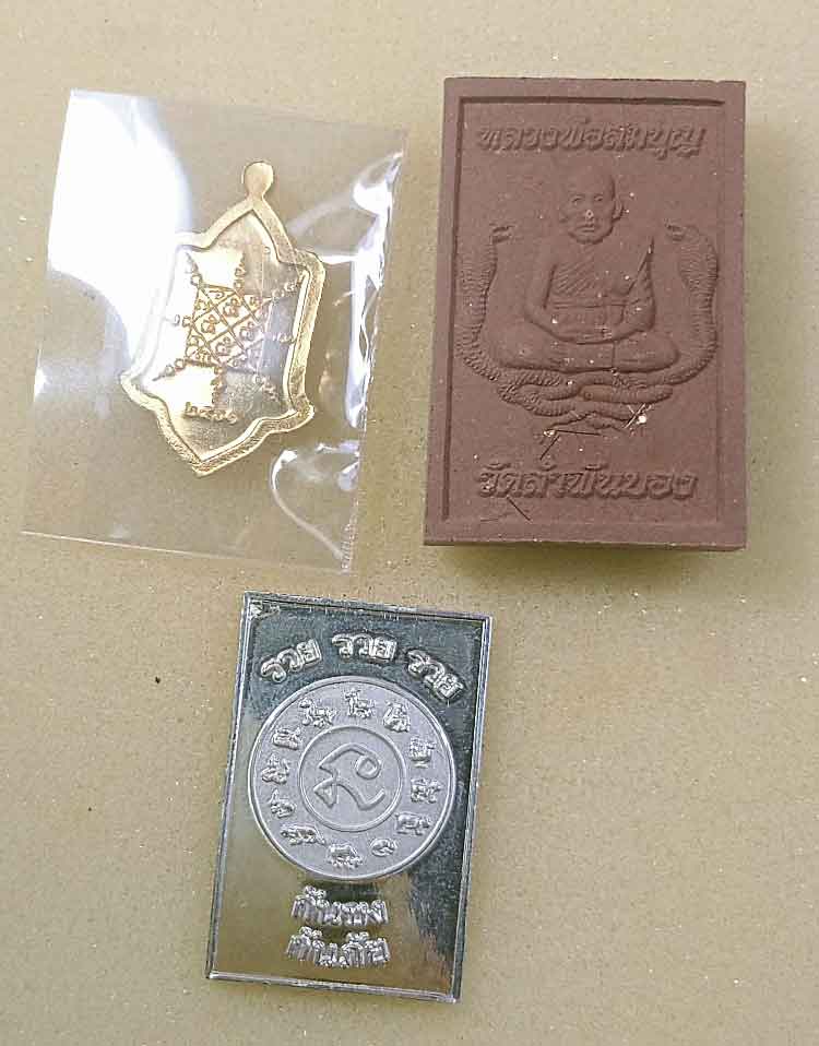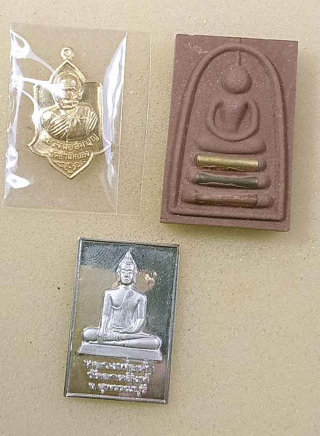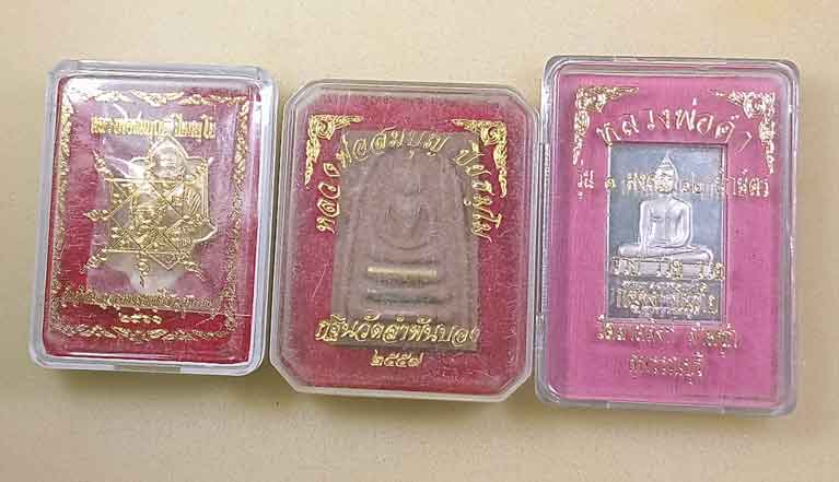 เหรียญ + สมเด็จ หลวงพ่อสมบุญ วัดลำพันบอง สุพรรณบุรี + เหรียญหลวงพ่อดำ วัดลาดสิงห์ สุพรรณบุรี