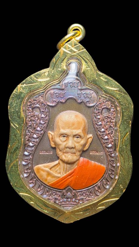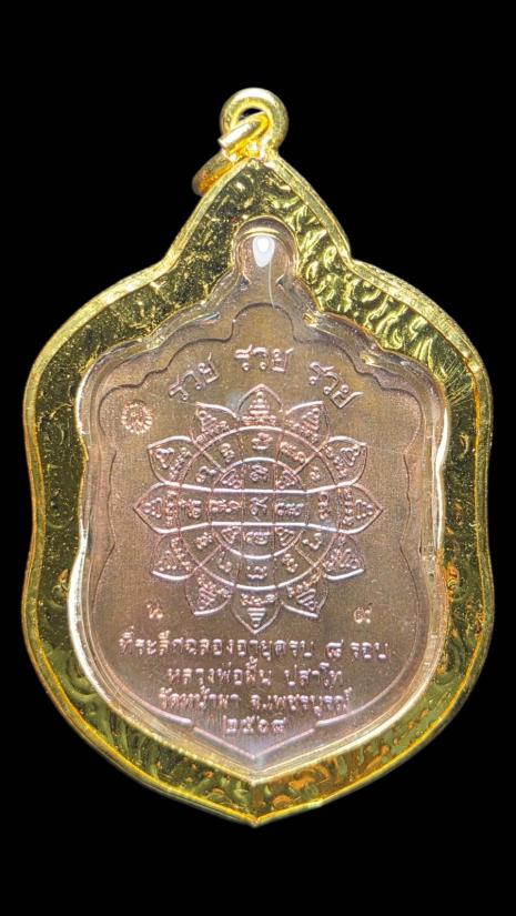 เหรียญเสมา8รอบรุ่นรวยรวยรวย หลวงปู่ฝั้น ปสาโท วัดหน้าผา (เนื้อนวะหน้ากากเพ้นท์เสมือนจริงเลี่ยมกรอบ เลข9