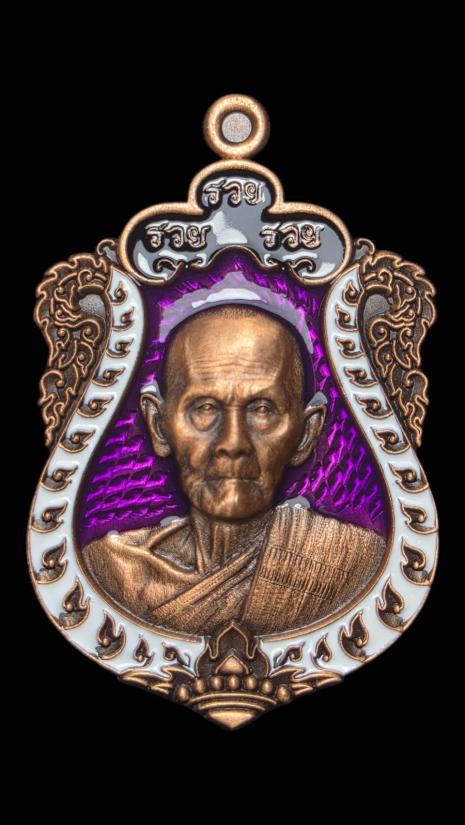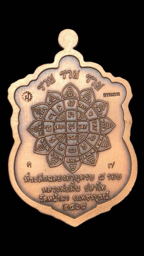 เหรียญเสมา8รอบรุ่นรวยรวยรวย หลวงปู่ฝั้น ปสาโท วัดหน้าผา (เนื้อทองแดงซาตินลงยา เลข7)