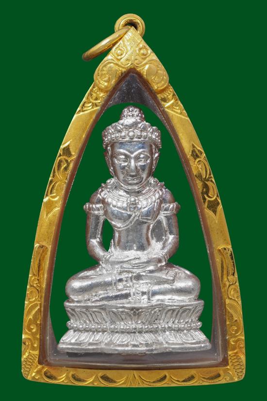 พระกริ่งจอมสุรินทร์ มหาเศรษฐี หลวงปู่หงษ์ เนื้อเงินก้นนวะโลหะ ปัจจุปันไม่มีกรอบทองทอง