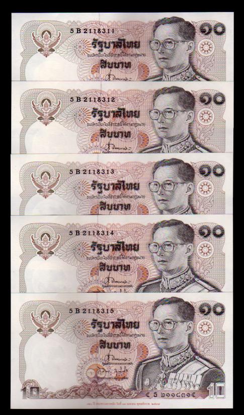 ## ธนบัตร 10 บาท ## ทรงม้า ## 120ปี กระทรวง ## เรียงเลข 5 ฉบับ ## แกะแหนบ ## UNC ##