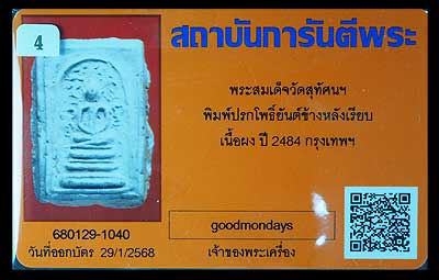 สมเด็จอินโดจีน พิมพ์แซยิดปรกโพธิ์ ข้างยันต์ ปี2484 วัดสุทัศน์ กทม.