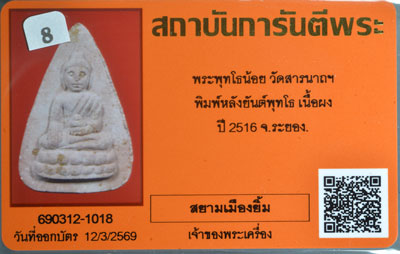 พระพุทโธน้อย รุ่น2 พิมพ์หลังยันต์พุทโธ ปี 2516 วัดสารนาถธรรมาราม จ.ระยอง