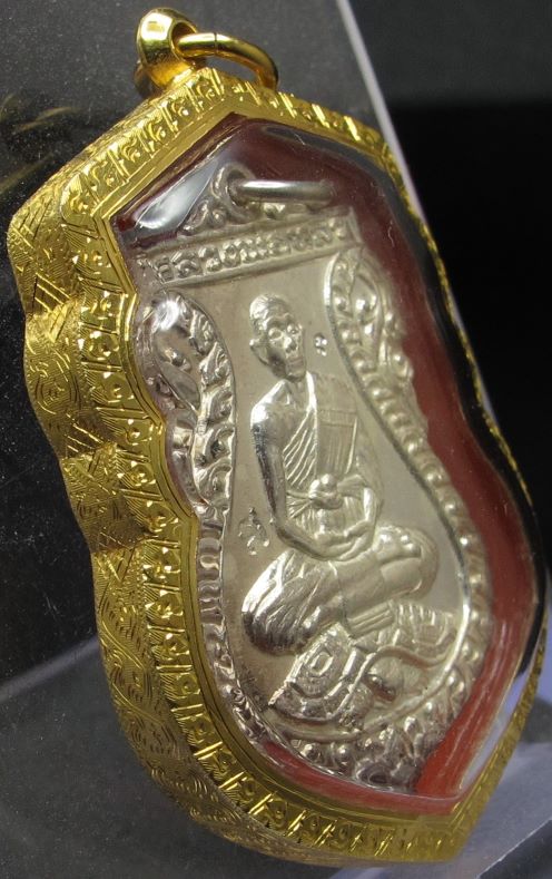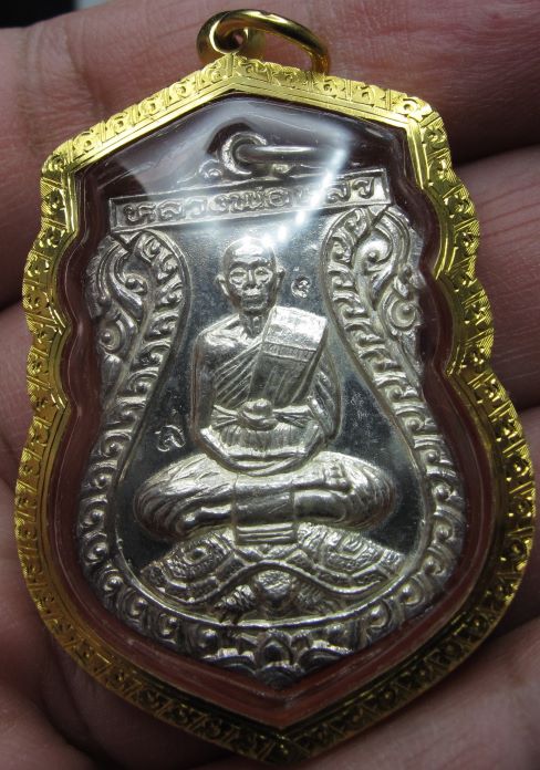 เหรียญเสมาหลังเต่า เนื้อเงิน เลี่ยมทอง 65% หนัก 3.37กรัม พร้อมบัตรการันตี ขั้นต่ำ 15950บาท