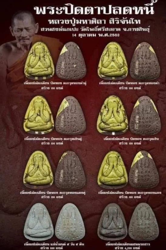 พระปิดตาปลดหนี้ หลวงปู่ศิลา สิริจันโท ยุคต้น เนื้อผงไม้ตะเคียน กรรมการ พิเศษ จารหมึกทอง ด้านหน้า-หลัง ซองเดิม เคาะฆ้อนมีหลายรายการ
