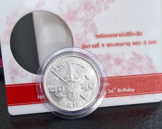 เหรียญกษาปณ์ ชนิดราคา 20 บาท ในหลวงร.9 พระชนมายุครบ 3 รอบ ปี2506