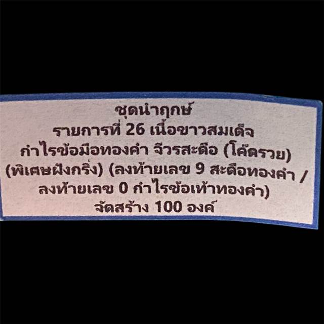 ถ่ายจากองค์จริงตามรูป รายการพิเศษ นำฤกษ์ กำไลข้อมือทองคำคู่ สะดือจีวร(อุดกริ่ง) โค๊ด "รวย" จัดสร้างน้อย 100 องค์ กล่องเดิมสวยหรูครับ