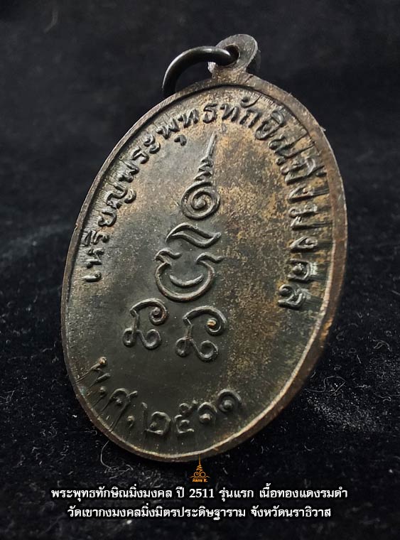 เหรียญพระพุทธทักษิณมิ่งมงคล วัดเขากง จ.นราธิวาส ปีพ.ศ. 2511 เนื้อทองแดงรมดำ สวยเดิม