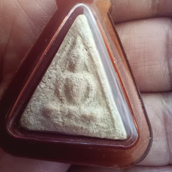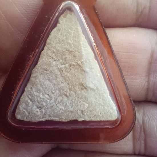 พระผงมีกิน พิมพ์สามเหลี่ยม เนื้อข้าวสุก อาจารย์ลอย โพธิ์เงิน ปลุกเสกพิธีจตุรพิธพรชัย ปี2518