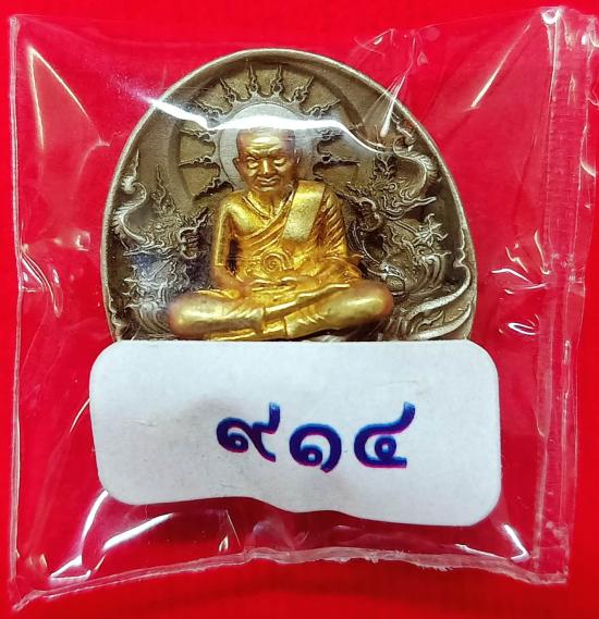 เหรียญหลวงปู่ทวดรุ่น "อภิเมตตา มหาโพธิสัตว์" พิมพ์จิ๋ว เจริญลาภ เจริญยศ เนื้ออัลปาก้า องค์กะไหล่ทองคำ หมายเลข ๙๑๔ ซีลเดิมๆ พร้อมกล่องเดิม