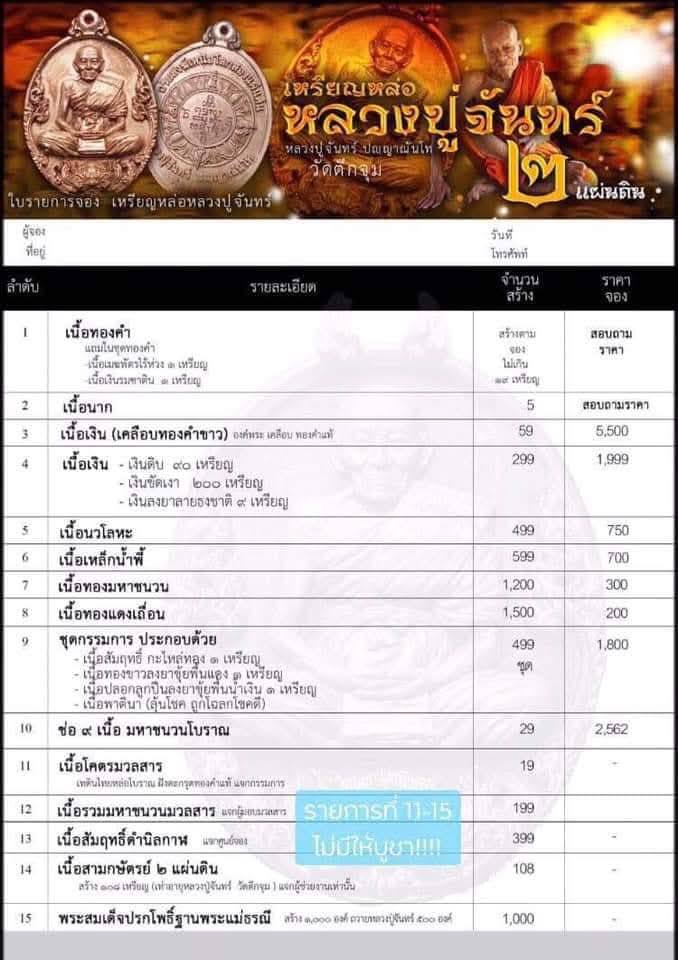 วัตถุมงคล : ที่ลูกศิษย์สร้างมีจำนวนน้อยท่านได้ปลุกเสกเดี่ยวให้อย่างดีมากผู้คนที่ได้ไปล้วนมีโชคลาภร่ำรวยค้าขายดีการงานหน้าที่รุ่งเรืองกิจการห้างร้านก้าวหน้าและประสบการณ์อีกมากมาย หลวงปู่จันทร์ท่านรู้ ท่านเห็นในสิ่งที่ผ่านมาและกาลเวลาข้างหน้าวัตถุมงคลของๆท่านที่เสกไว้ต่อไปจะได้ตามหากันทั่วแผ่นดิน