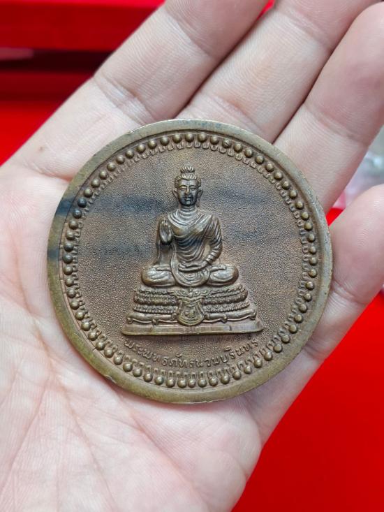 เหรียญกลมใหญ่ทำน้ำมนต์พระพุทธภัทรนวมบุรินทร์ ที่ระลึกในพิธีเ ททองหล่อสร้าง พระพุทะชินราช-พระพุทธชินสีห์ สมเด็จพระอริยวงศ์ คตญาณ สมเด็จพระสังฆราช สกลมหาสังฆปริณายก เสด็จเป็นองค์ประธาน พิธี วัดเบญจมบพิต