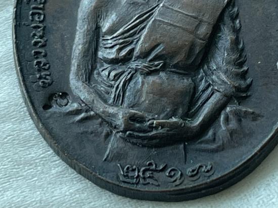 เหรียญ รุ่นแรก " หลวงพ่อเมือง วัดท่าแหน " จ.ลำปาง ปี 2517 เนื้อทองแดง สภาพสวย (บล็อกเขยื้อน)