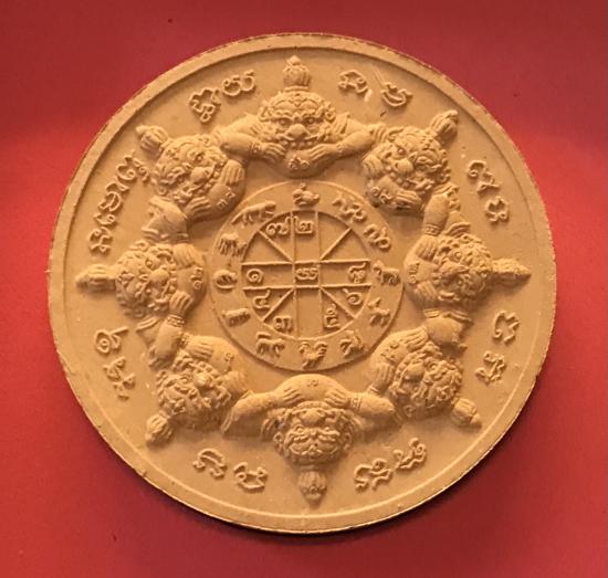 ...ด้านหลังเป็น ดวงตราพญาราหู รายล้อมด้วย ๑๒ นักษัตร อันเป็นดวงตราศักดิ์สิทธิ์ของชาวศรีวิชัยทะเลใต้ ประทับลัคนา "มหาจักร" อันเป็นลัคนาที่จะส่งผลให้ผู้ที่ถือครองบูชาพบกับความเจริญรุ่งเรืองตลอดไป