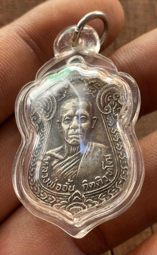 เหรียญหลวงพ่ออั้นวัดเจษฎารามเนื้อเงิน ปี 2522 เลี่ยมพลาสติกกันน้ำพร้อมใช้