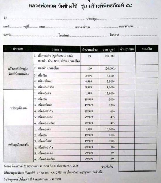 | ชื่อพระเครื่อง |