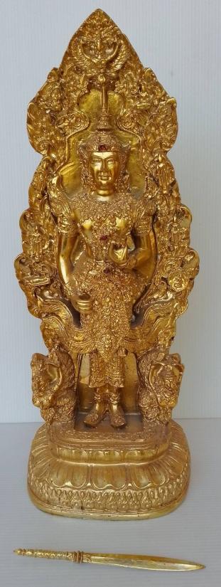 พระสยามเทวาธิราช จตุรเสนาสมาคม โคยพระบรมราชานุญาต ขนาดฐาน 6 x 4นิ้ว สูง 16 นิ้ว พระขรรค์ถอดได้ เนื้อเรซิ่น