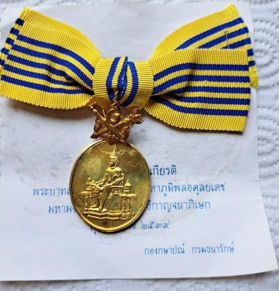 เหรียญที่ระลึกประดับแพรแถบ พระราชพิธีฉลองสิริราชสมบัติครบ 50 ปี ( กาญจนาภิเษก ) ปีพุทธศักราช 2539 เนื้อเงิน กะไหล่ทอง (สตรี) |