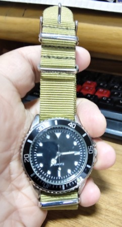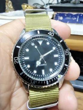 นาฬิกาทรงดำน้ำระบบถ่านขอบหมุนได้ปกติสายไนลอนอย่างดีเคาะเดียวปิด |