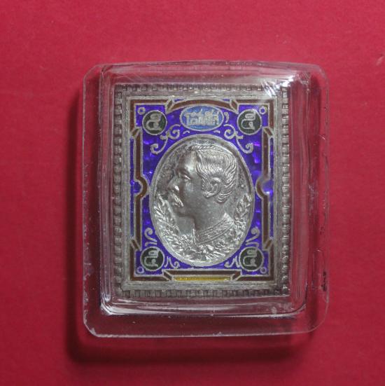 เหรียญแสตมป์ ร.5 เนื้อเงินลงยา วัดแก้วแจ่มฟ้า ปี2536 บางรัก กทม. |