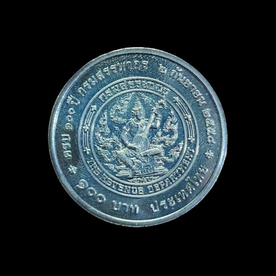 เหรียญกษาปณ์ที่ระลึกชนิดราคา 100 บาท เนื่องในโอกาสครบ 100 ปี กรมสรรพากร ผลิตขึ้นในปี พ.ศ. 2558