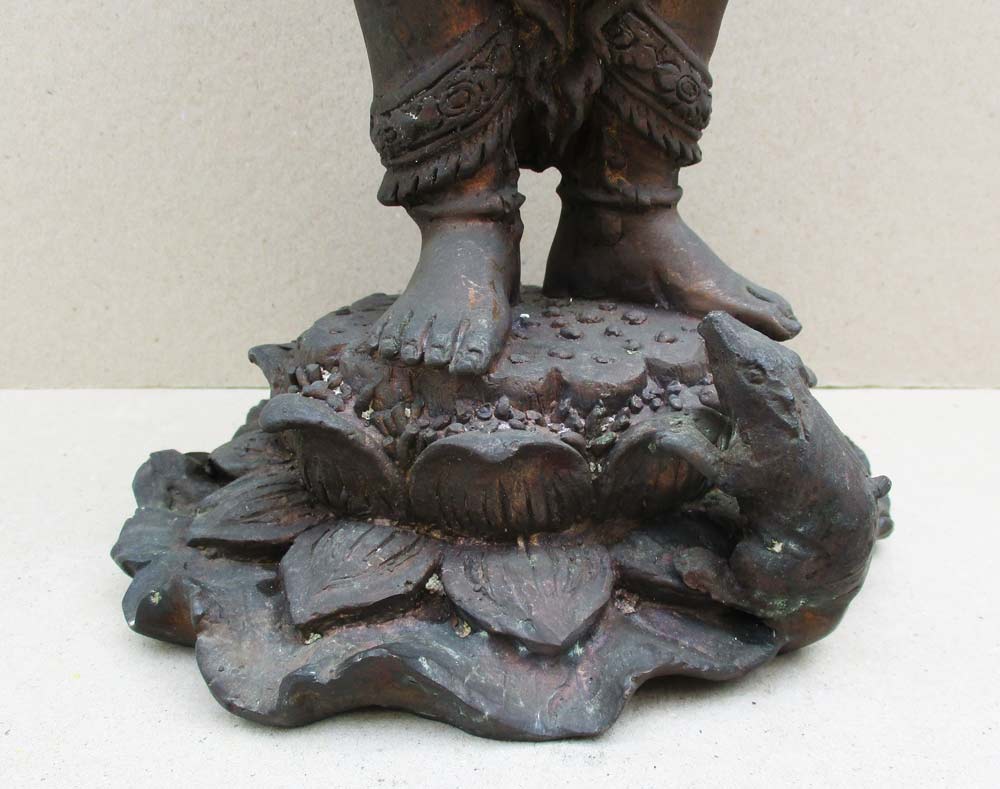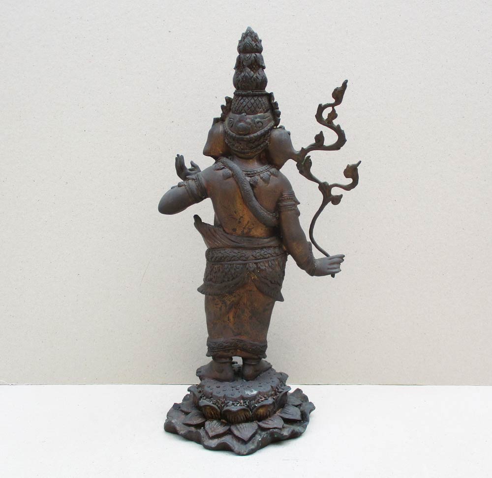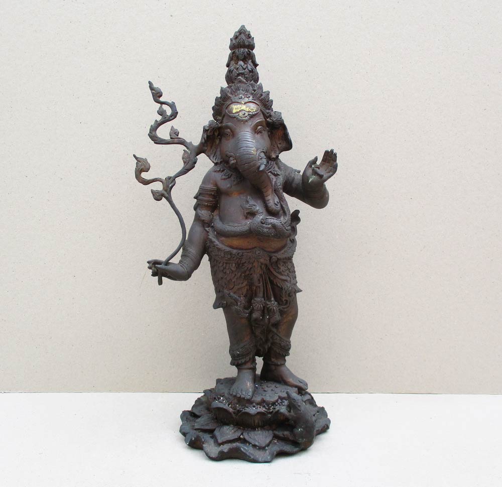 พระพิฆเนศวร์ยืนบนดอกบัว ปางสำเร็จทรงเครื่องพญานาค รุ่น บ่วงสื่อเฮง สูงรวมฐาน 17 นิ้ว เนื้อโลหะผสมผิวแห้งหิ้ง !!