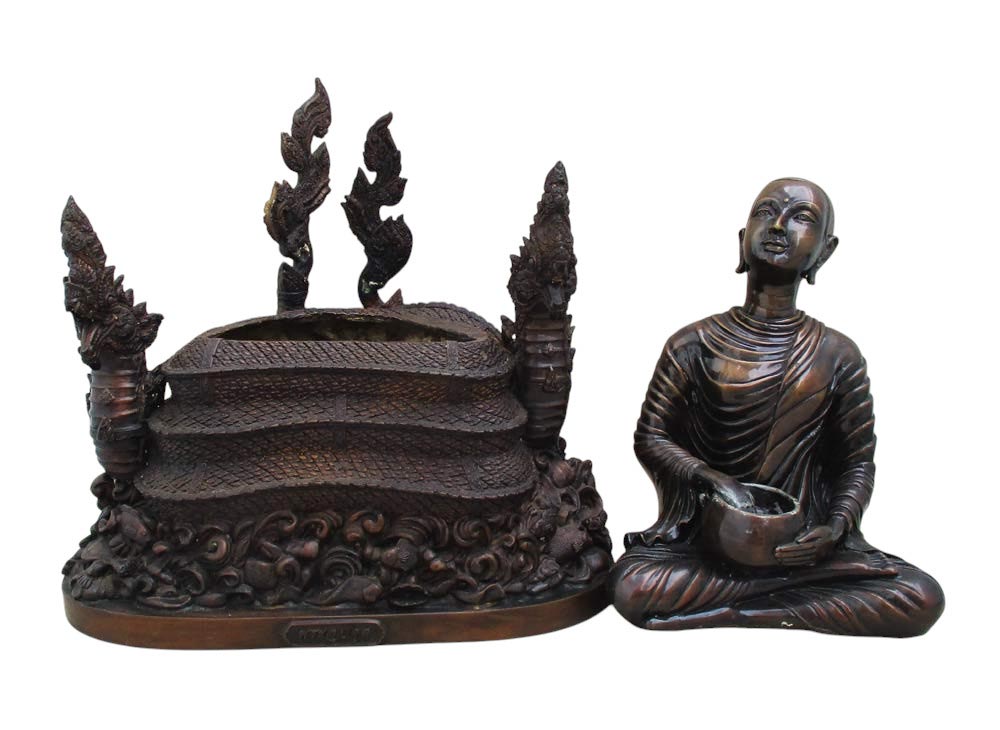 พระอุปคุต หลวงพ่อประทวน อตตฺทีโป วัดถ้ำดาวเขาแก้ว จ.สระบุรี พ.ศ.2562 หน้าตัก 8.2 นิ้ว เนื้อโลหะรมมันปูขัดเงา ใต้ฐานบรรจุ มวลสารศักดิ์สิทธิ์ องค์พระฯถอดออกจากฐานได้ !!