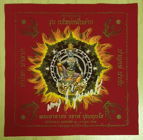 ผ้ายันต์ หลวงพ่อวราห์ วัดโพธิ์ทอง รุ่น ทรัพย์หมื่นล้าน เนื้อกำมะหยี่สีแดง ขนาด 18x18 นิ้ว