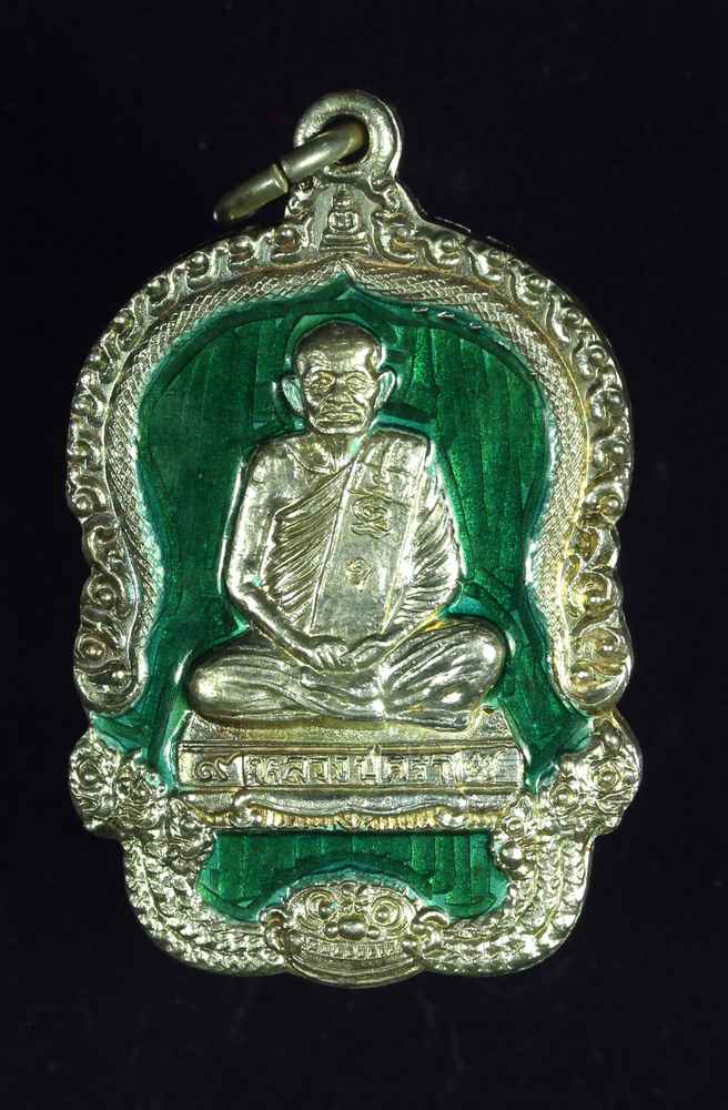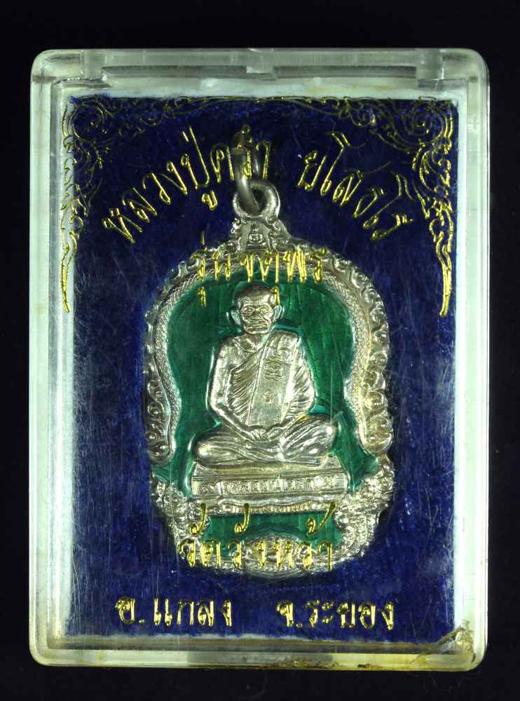 +++ เหรียญเนื้อเงินลงยาสีน้ำงิน หลวงปุ่คร่ำ กล่องเดิม +++ สีเขียวเหนี่ยวทรัพย์ครับหายาก |