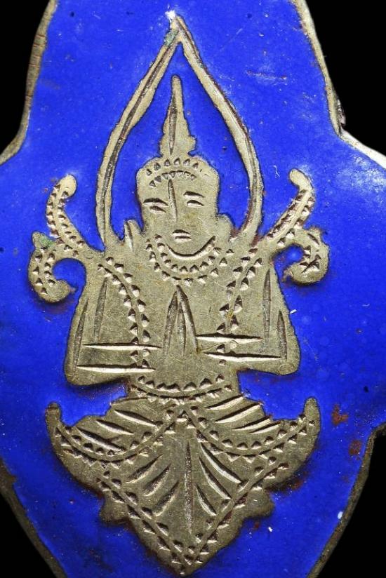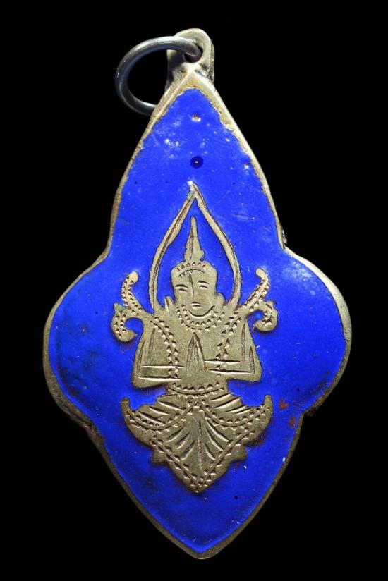 เหรียญเทพพนม ลงยาสีน้ำเงิน พุทธศิลป์เก่าผิวหิ้ง "ขนาดเหรียญสูง 4 cm."