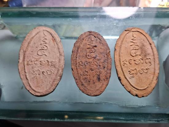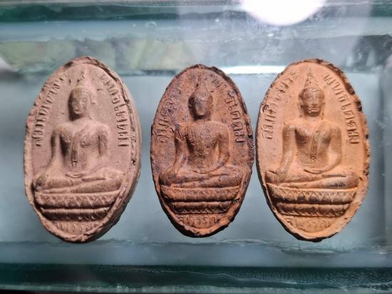 รับ3องค์ พระพุทธโคดม (พระพุทธเจ้าองค์ปัจจุบัน) หลวงพ่อขอม วัดไผ่โรงวัว จ.สุพรรณบุรี ปี 2505 เนื้อดินเผา เนื้อแร่