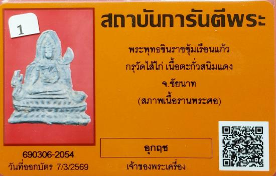 พระพุทธชินราชซุ้มเรือนแก้ว กรุวัดไส้ไก่ เนื้อตะกั่วสนิมแดง จ.ชัยนาท พร้อมบัตรรับรองจากจีพระ |