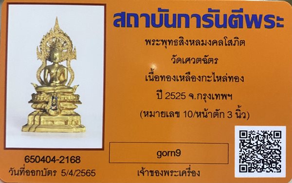 พระพุทธสิงหลมงคลโสภิต ภปร หน้าตัก 3 นิ้ว วัดเศวตฉัตร รุ่นแรก ปี2525 เนื้อโลหะผสมกะไหล่ทอง (สองถอด) "หมายเลข 10"