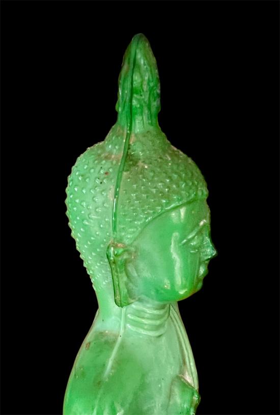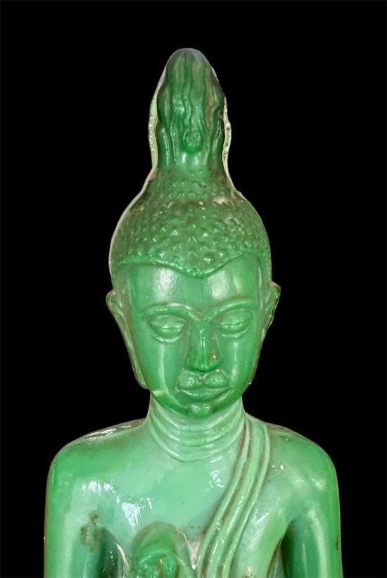 พระแก้ว 25 ศตวรรษ ปางห้ามญาติ ประจำวันจันทน์ ฐานเพชร เนื้อแก้วสีหยก ผิวหิ้ง หายากครับ สูง 13 นิ้ว สภาพสวยตามรูปครับ(มีบิ่นนิดหน่อยที่ชายสบงด้านล่างตามภาพศรชี้ครับ ) ราคาเบาๆเคาะเดียวครับ