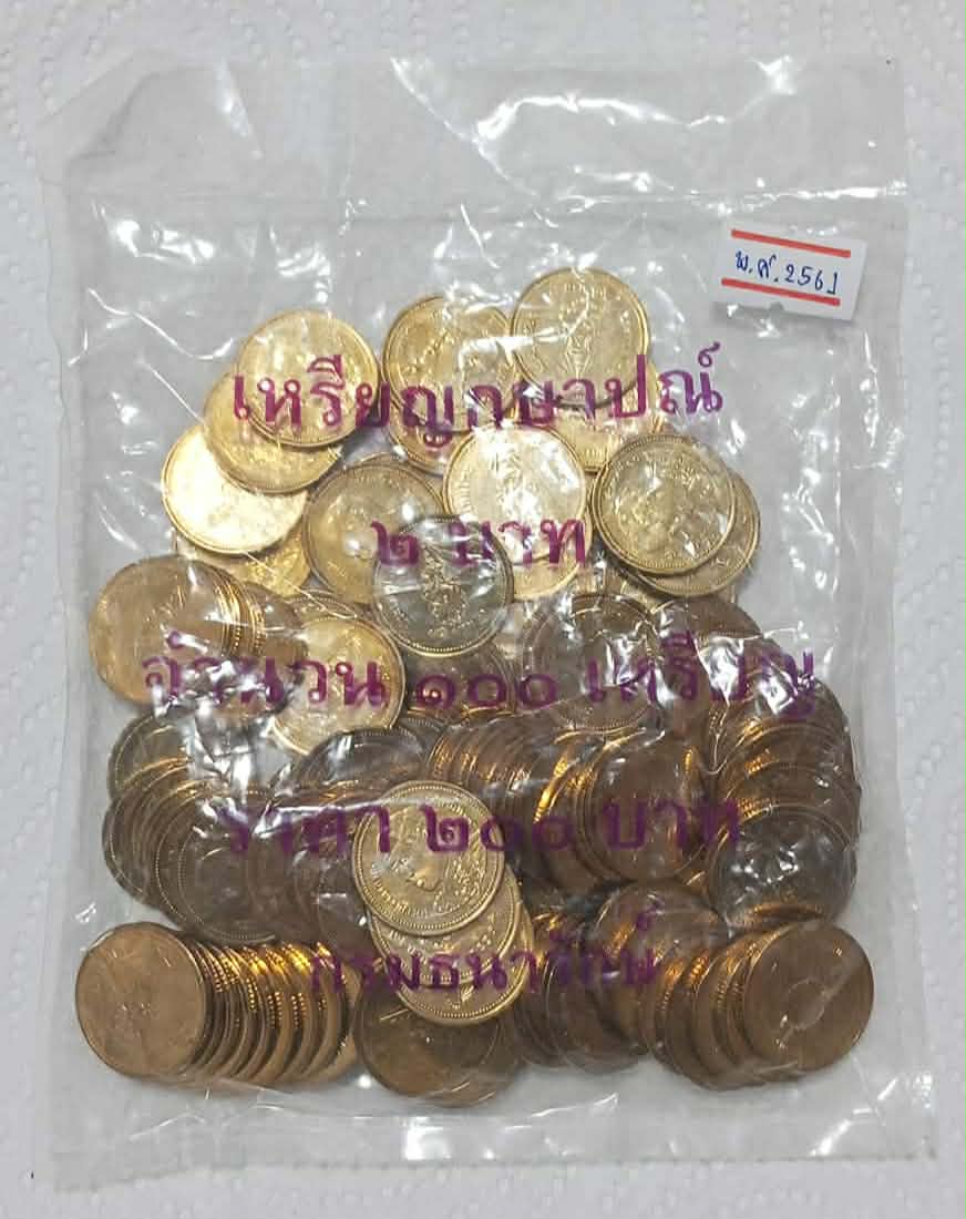 เหรียญ 2 บาทหมุนเวียน สีทอง"ไม่ผ่านการใช้งาน UNC ปี พ.ศ.2561 แพ็คกรม เป็นปีแรกของการผลิต รัชกาลที่ 10 จำนวน 1 ถุง มี 100 เหรียญ แพ็คกรมธนารักษ์สวยๆ ครับ