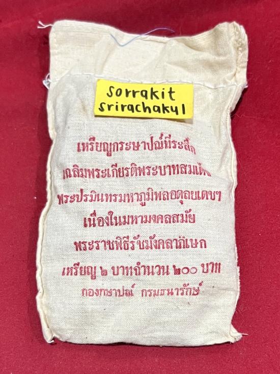 เหรียญ 2 บาทที่ระลึกเนื่องในมหามงคลสมัยพระราชพิธีราชชมังขราภิเษก ยกถุง 100 เหรียญ อยู่ในถุงผ้าเดิมๆจากกรมธนารักษ์ ยังไม่เคยเปิดปากถุง สวยงาม หายาก น่าสะสม