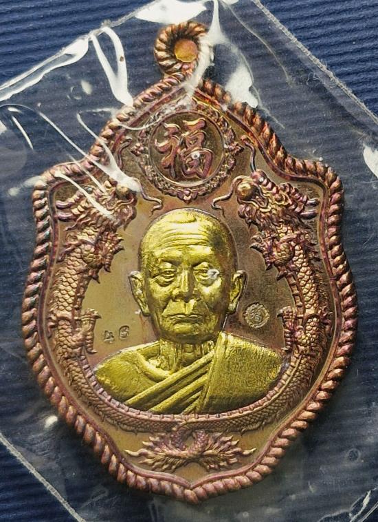 เหรียญมังกรคู่ เนื้อทองแดง หน้ากากชุบทอง หลวงปู่บุญมา วัดบ้านแก่ง อำเภอกบินทร์บุรี จังหวัดปราจีนบุรี
