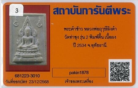 พระคำข้าว รุ่น 2 หลวงพ่อฤาษีลิงดำ วัดท่าซุง จ.อุทัยธานี พร้อมบัตรพระแท้สบายใจ |