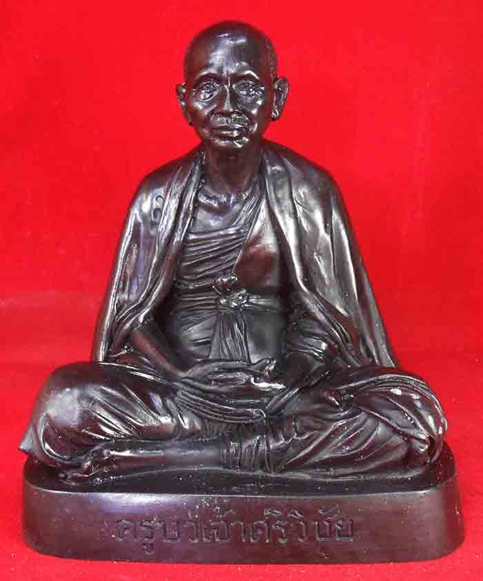 พระบูชาครูบาเจ้าศรีวิชัย จ.เชียงใหม่ ขนาด 5 นิ้ว เนื้อโลหะรมดำ ใต้ฐานฐานกลวง